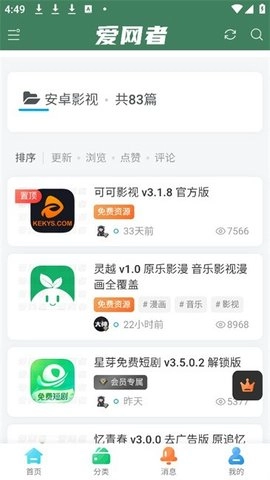 2、在爱网者APP内部,你可以浏览不同分类的软件列表。