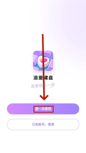 1、下载安装并打开追爱键盘app,点击第一次使用。