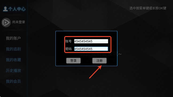 2、在注册时随意输入账号和密码,然后点击注册,就能注册成功(注意,一天仅能注册一次,若要再次注册,需要重新下载应用)