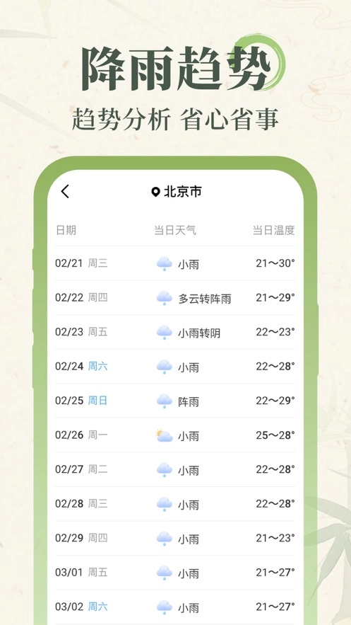 2、40日趋势预报:比一般App更长的预判周期,方便提前安排出行。