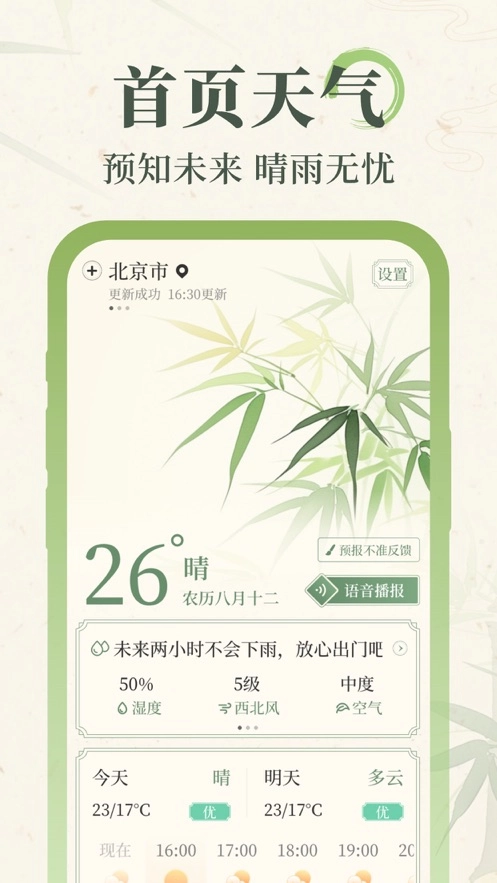 3、智能语音播报功能:用户只需发出语音指令,就能获取天气信息的语音播报,无需手动操作,双手得以解放,尤其适用于驾驶或运动等场景。