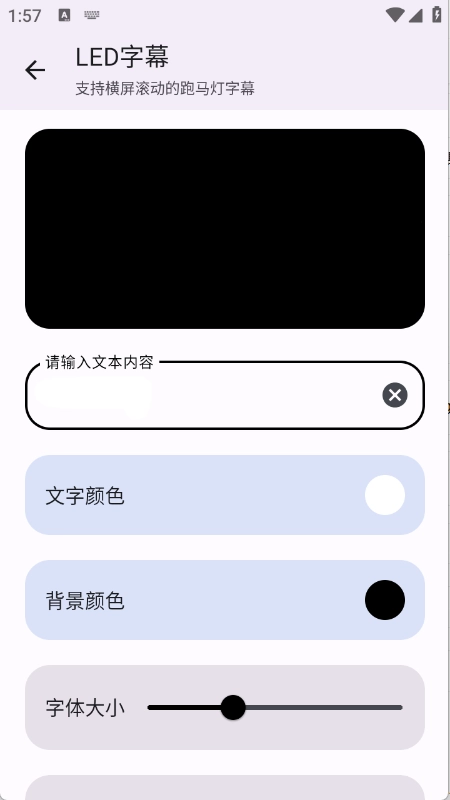 5. 点击打开所需工具,在小编这里以“跑马灯字幕”为例,输入文本内容并选择颜色,如此即可完成操作。