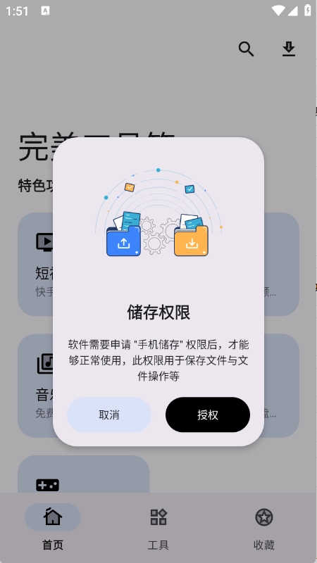 1在使用完美工具箱App之前,需先打开该应用,并开启相关权限。