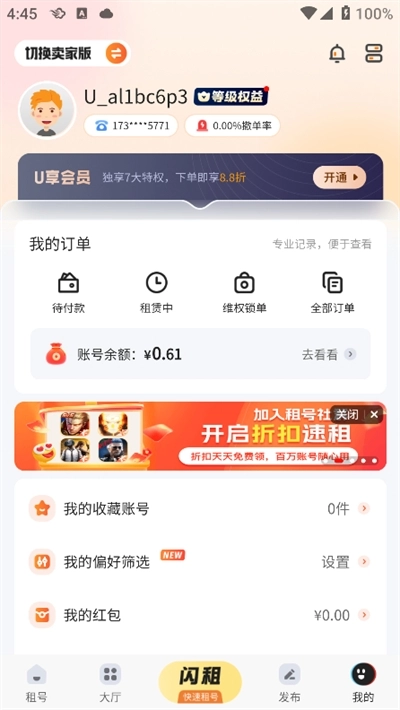 U号租为您提供高品质的游戏账号租赁服务,涵盖全网热门的手游与端游账号。在这里,用户能便捷地在线挑选账号,轻松体验各类优质游戏账号。游戏爱好者可轻松在此租号,平台设有全面的游戏分区,支持随时在线搜索账号,让您在线交易毫无压力。