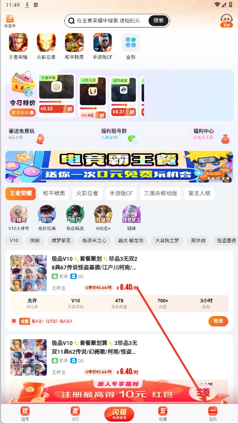 1. 进入U号租主页,便能瞧见诸多不同类型的账号信息。