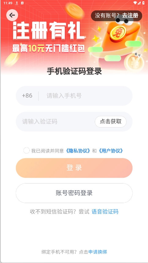 4、点击“选择登录”,输入手机号码后完成登录操作即可。