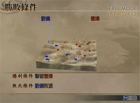 有一种模式能让你自由挑选关卡。在无双模式里,只要成功通过某个关卡,就能在自由模式中选取该关卡以及与之对应的担当势力。