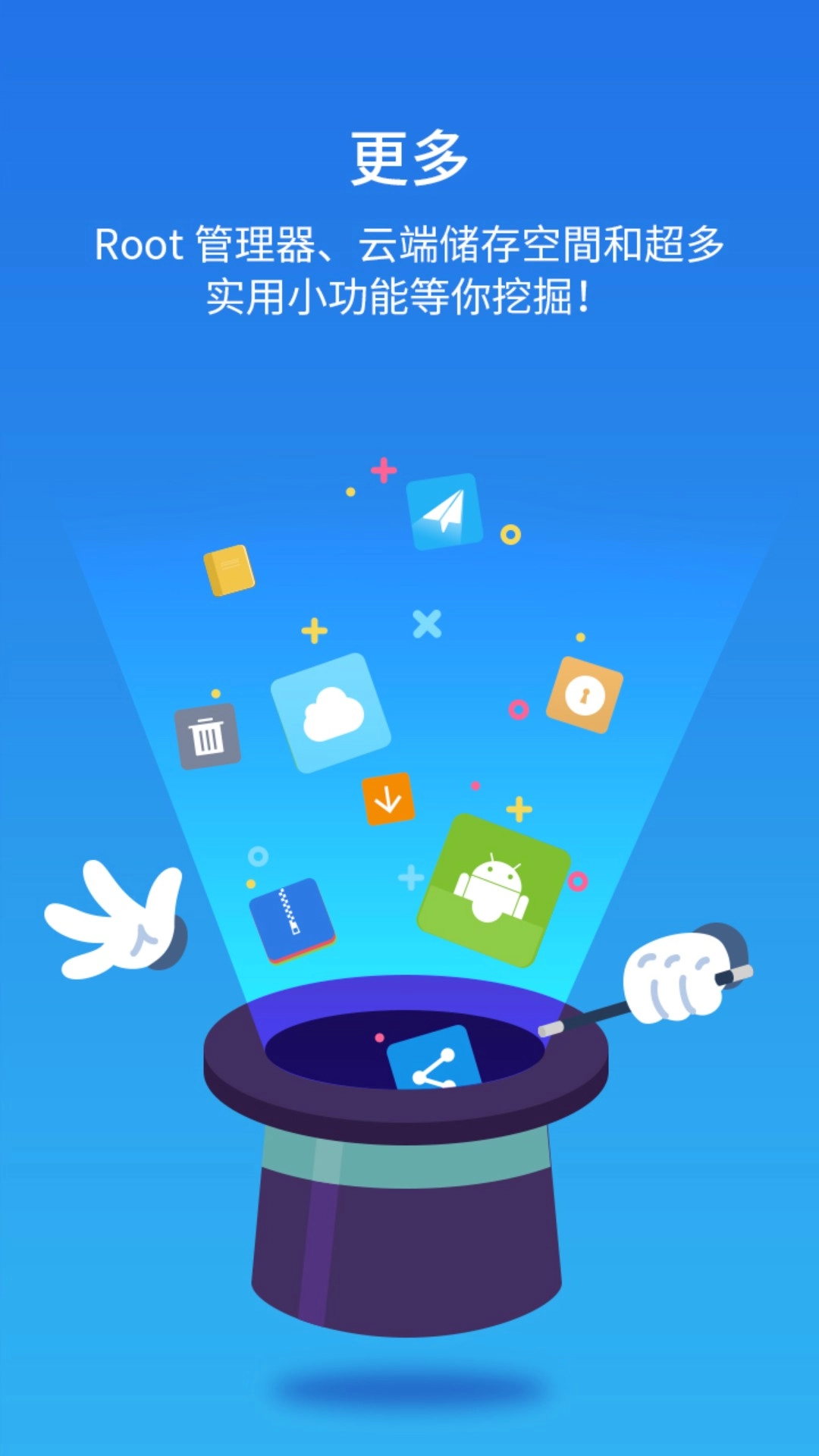 借助它,能够对手机内存、SD卡、云端存储等各类文件及文件夹进行浏览与管理。利用它,轻点即可播放音乐、播放视频、查看图片、阅读文档,还能安装应用、查看压缩文件、执行搜索操作、更改视图。此外,它还提供海量网盘空间用于数据存储。