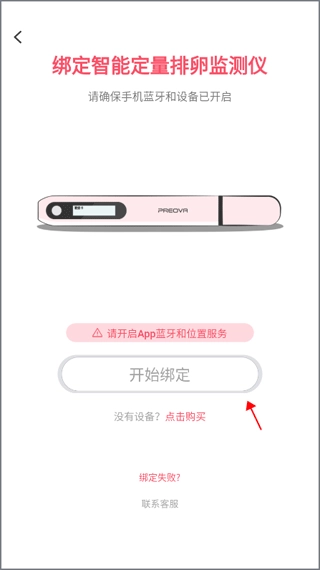 3、会看到提示说请先打开手机蓝牙和定位服务,将两个功能打开后就可以开始绑定了。
