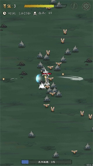 看到这儿,想必有些小伙伴已经猜到,就玩法来说,和之前的抖音小游戏《地下车割草》类似,同样人气颇高的作品还有《吸血鬼幸存者》。没错,在操作方面,采用竖屏搭配虚拟摇杆来控制方向移动,通过把控方向去攻击从四面八方涌来的妖物魔兽。在这个过程中,怪物掉落的道具,能为角色提供大量经验值,怪物等级越高,所提供的经验值也就越多。每当角色完成升级,玩家就可以从随机出现的三项法宝中进行挑选,借助主动技能与被动技能的组合搭配,进而合成超级武器!