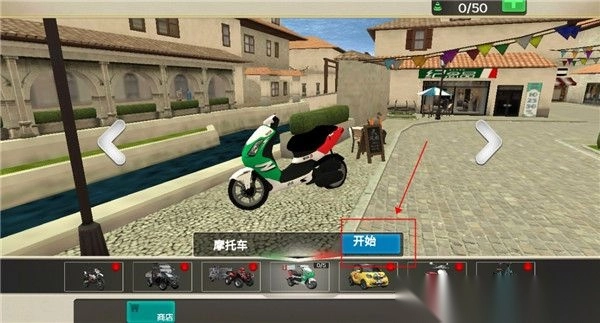 1. 当你首次踏入游戏,系统会赠予一辆基础摩托作为载具,点击“开始”,便能开启送餐之旅。