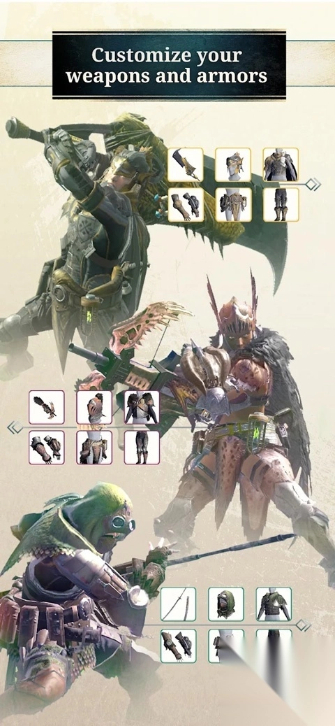 在游戏里,设计了各式各样的武器与装备供玩家挑选。每种武器和装备类型都具备独特的战斗风格与特殊技能,玩家能够据此自由施展自己的狩猎策略。
