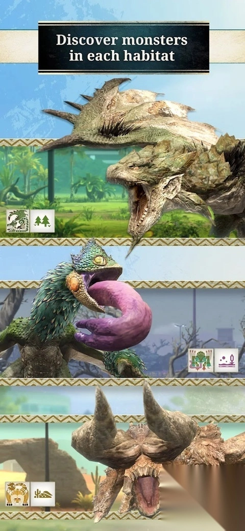 在《Monster Hunter Now》里,你得走出家门,通过身体移动来狩猎那些出现在现实世界中的怪物。依据你所处周边的栖息地类型,比如森林、沙漠或者沼泽,去发现形形色色的怪物。你既可以独自投身于激动人心的战斗,也能够与其他猎人组队,共同应对这些巨型怪物。