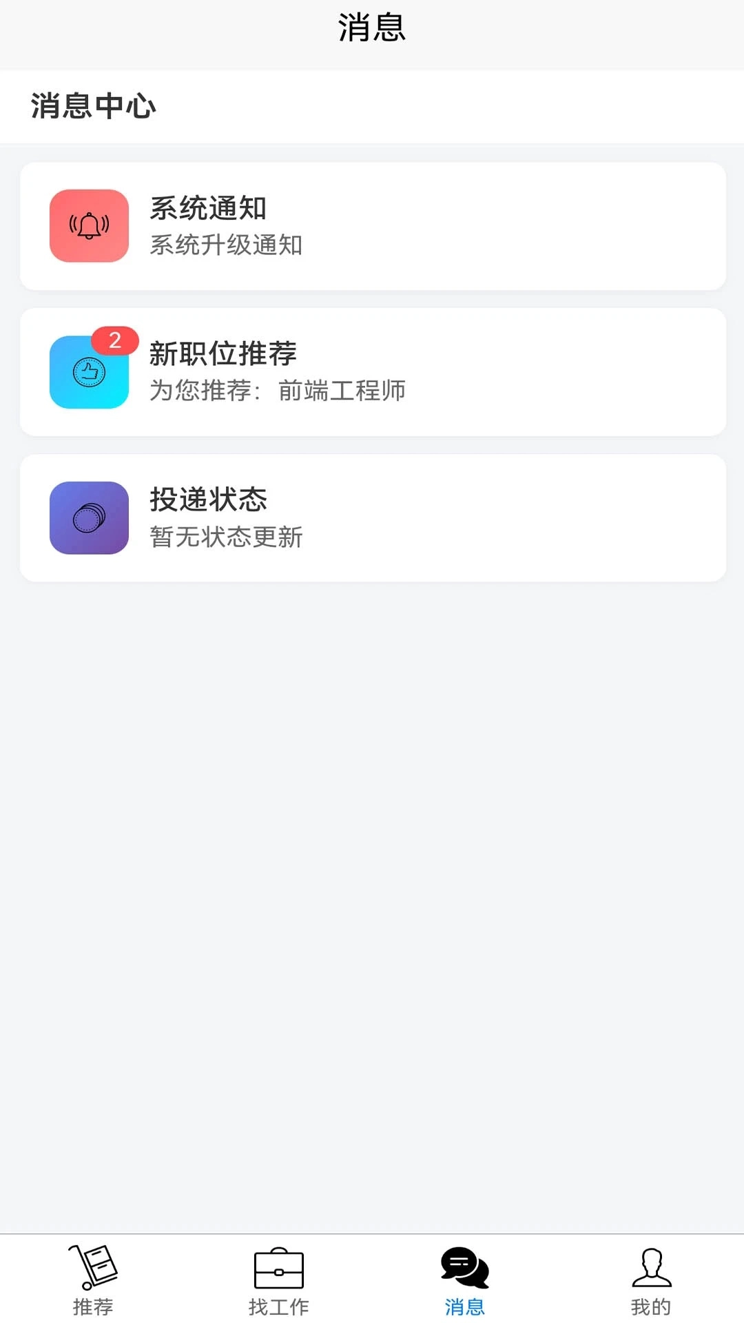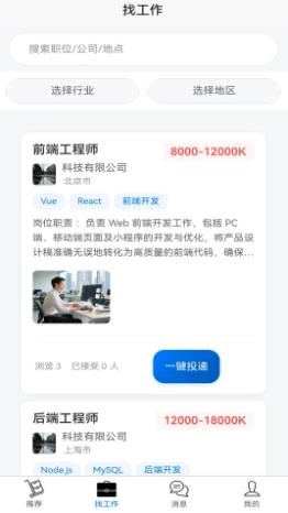会有各种新工作推荐,同时还有自己与公司聊天的记录。