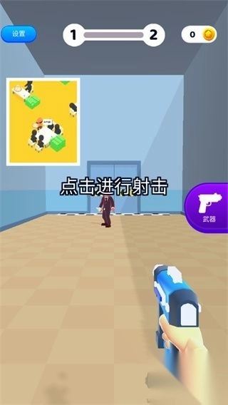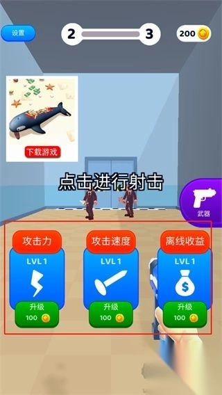 2、游戏中通过点击屏幕进行射击操作。