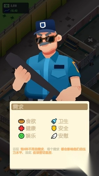 通过对打架斗殴行为的管控来提升自身声望,以智能化方式管理囚犯的需求,确保能随时满足他们。为狱警配备最优质的安保装备,负责看守那些最为危险的囚犯,在必要情况下对其实施单独监禁。