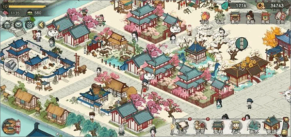 游戏建筑分景致、经营、生产、民宅四类,多达上百种,可以搭配出初夏秋冬、衣食住行等各种主题风格。