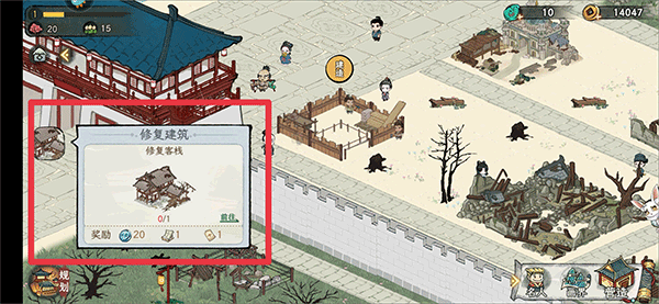 1、在游戏中你需要将地图上的建筑进行修复,首先点击破旧建筑