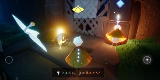 小金人指的就是下图里发光的小人,当你靠近后,点击那只手就算收集到了。集齐一定数量的小金人,就能收集光翼啦。在游戏中,通常会依据光翼数量来区分萌新和大佬,光翼数量会显示在你光崽背部的斗篷上,不光自己能看到,其他玩家也可以瞧见哦。而且光翼越多,飞行时的能量储备也就越多。所以要尽可能把小金人收集齐全,因为在伊甸献祭获取红蜡烛时会用到小金人。即便小金人被消耗了也无需担心,它是可以反复收集的,收集次数多了,自然而然就能记住每个地图小金人的位置啦。