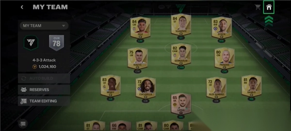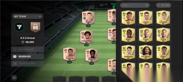 6、在这可以按下自动构建按钮,它会自动将具有最高OVR的球员添加到你的首发11人。