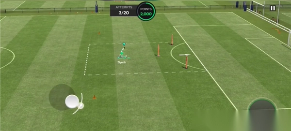 10、借助虚拟摇杆在障碍物周边进行导航,随后点击射门按钮或者滑动操作来达成射门从而获胜。