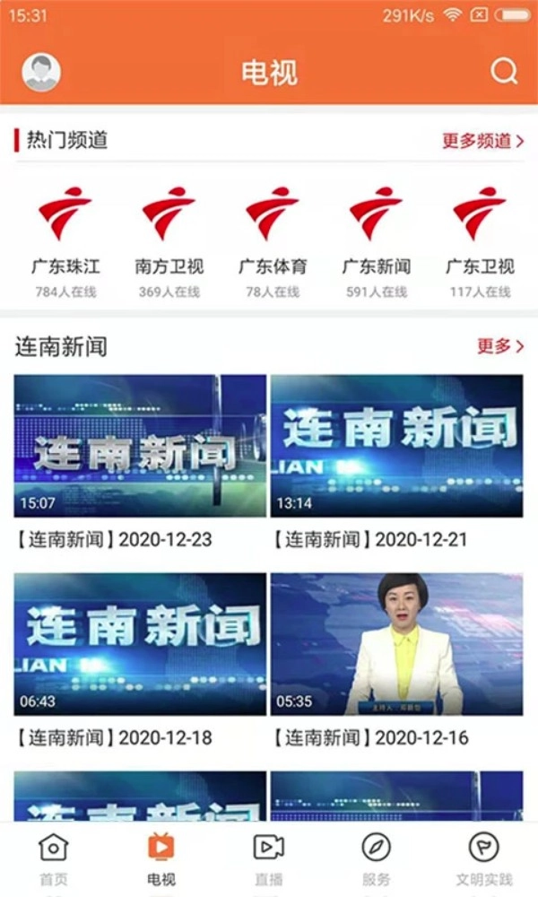 3.在电视栏目中选台观看,即可实时查看连南本地电视直播。