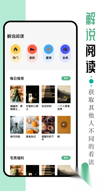 运用时尚的UI设计,搭配智能书籍推荐系统,依据阅读习惯实现精准推送,量身定制专属阅读方案。