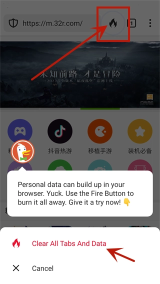 隐私保护:当访问完一个网页后,可点击火把按钮,将个人访问数据一键全部删除,保护你的隐私信息