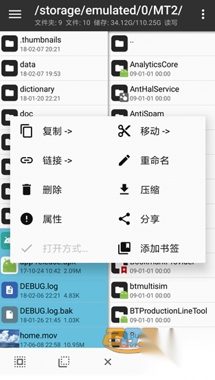独特的双窗口操作设计,可进行常见的文件管理操作,还支持各类ZIP压缩包操作。