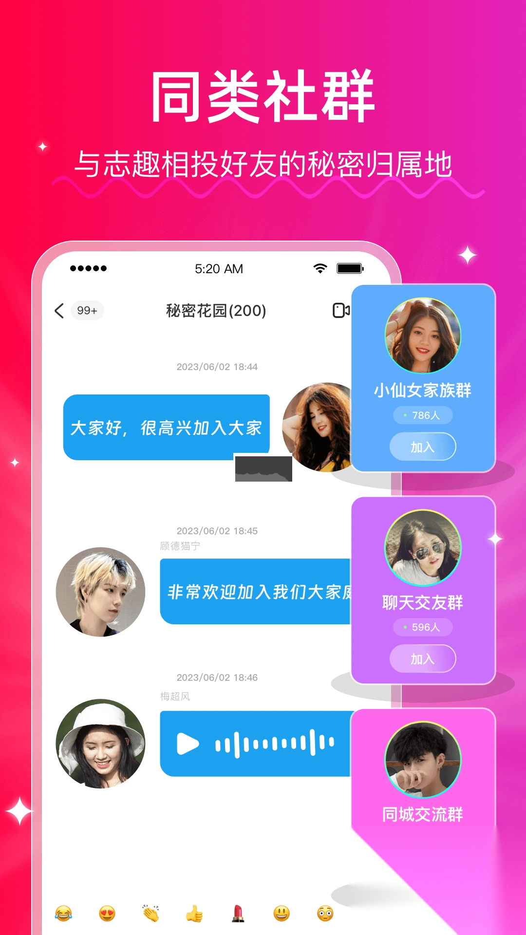 4. 即时语聊:仅需10秒,就能匹配到远方的她,与陌生的Ta畅所欲言,轻松结识新朋友。