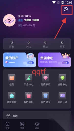 请开启你的咪可派对App,进入个人中心后,轻点设置功能。