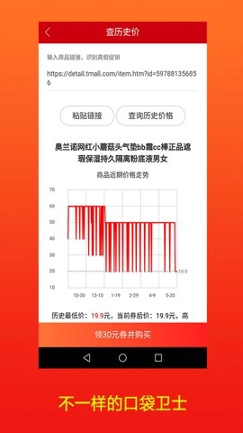 3、查询历史价格:借助口袋卫士APP,对指定商品的历史价格进行查询。