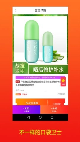 2、领优惠券:通过口袋卫士APP,查找商品促销优惠券。