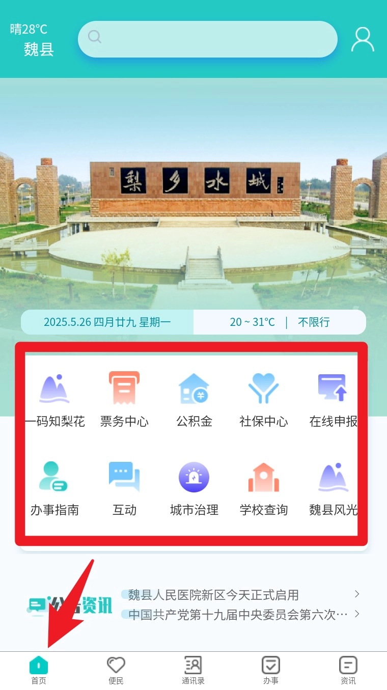 为增强市民在数字体验方面的获得感与幸福感,依托数据整合能力,达成魏县政务数据的互联互通,通过一个 app 构建集衣、食、住、行、医、教、养、政等功能于一体的一站式民生服务平台。该平台提供健康码、便民缴费、快递查询、政民互动等服务。
