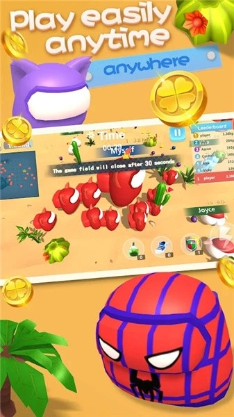 《在我们之中滚球》是一款趣味性拉满的休闲益智小游戏。游戏画风卡通可爱,玩法更是趣味横生。它受众广泛,大人能玩得尽兴,孩子也能迅速上手。玩家还能挑选自己喜欢的角色,参与各类混战。