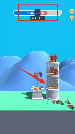 3、最上方是人数,蓝方代表你自己,红色代表敌人,每次射箭如果击杀了敌人红色的一方人数就会减少。