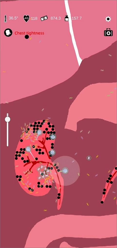 3、免疫战争游戏以闪烁的搞笑图形代表心脏、肌肉、肺和肾脏,你需要做的就是帮助击退病毒威胁;