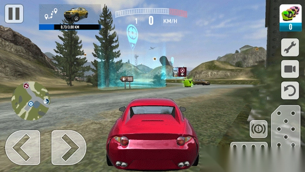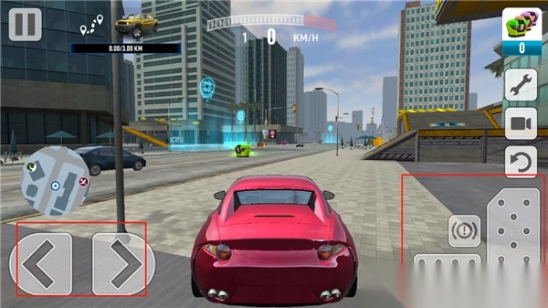 4、正式进入游戏后,左方可以点击控制方向键,右方玩家能够控制油门和刹车;