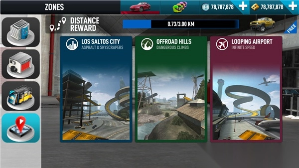 游戏为玩家打造了极为丰富的汽车赛道,玩家能够在城市、机场、越野等不同环境间自由切换,尽情体验于城市中毫无顾忌地驾车狂飙的畅爽。在这款游戏里,玩家可以自由切换视角,从车外到车内的视角转换轻松实现,且能完成各类任务以获取更多金钱,这些金钱可用于对汽车进行升级改造以及解锁更多车辆。