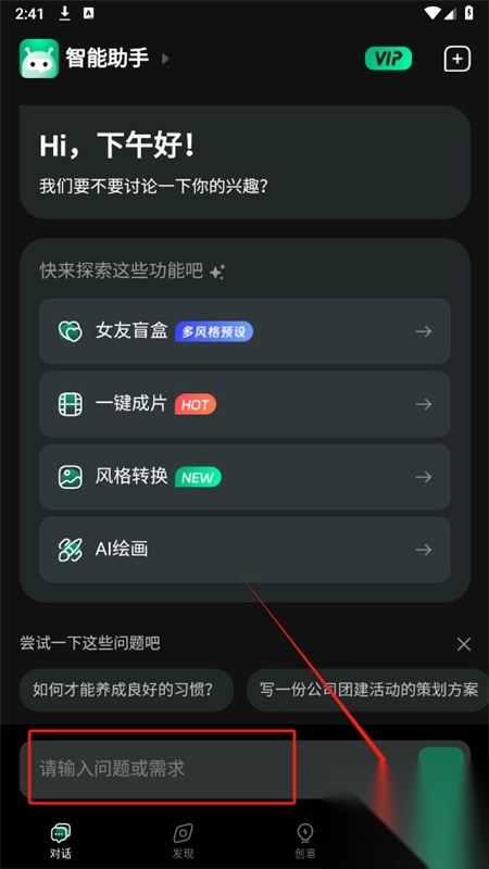 2、在对话页面,输入问题或者需求点击发送,软件会快速为您生成想要的内容