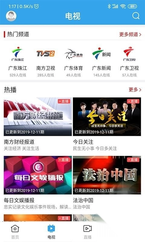 浏览直播频道,快速查看到热播的频道,选择即可观看;
