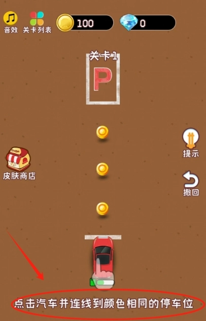 1. 新手教学及策略指南,借助动画演示“角度计算”“重力利用”等技巧,并配合教学关卡来熟悉涂鸦泊车的逻辑。