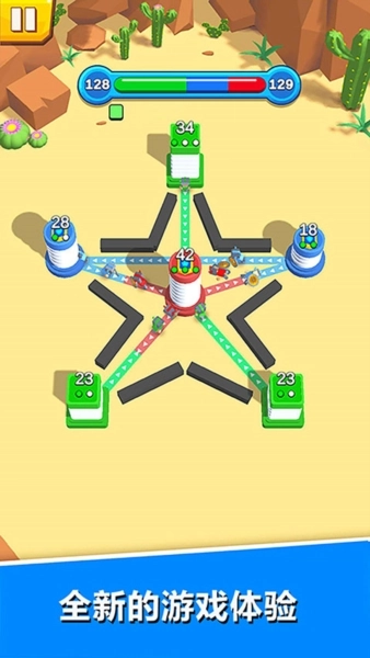 3、连接己方和己方的塔,可以进行支援。打败所有敌方的塔即可获得关卡胜利。