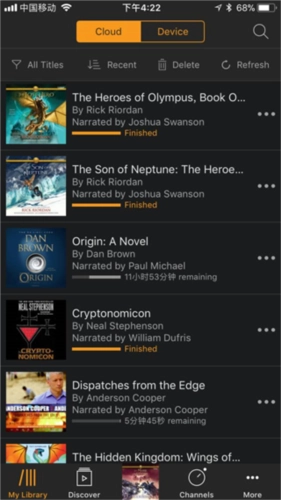 2、在手机上下载Audible APP后,书单界面是这样的。