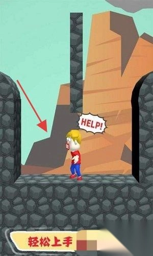 2、在石墙场景,点击屏幕指引角色方向,穿过通道,避开落石等危险。