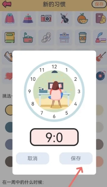 3、输入修改后的习惯提醒时间,点击保存按钮即可