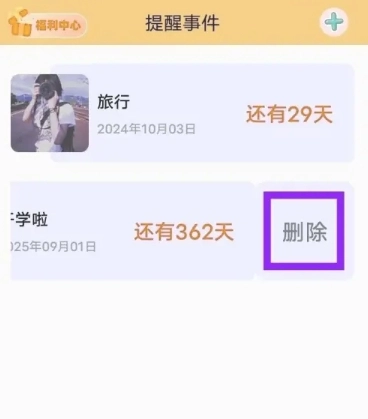 3、在左侧滑动后所出现的选项里,点击右侧的【删除】按钮,以此来移除该提醒事件。