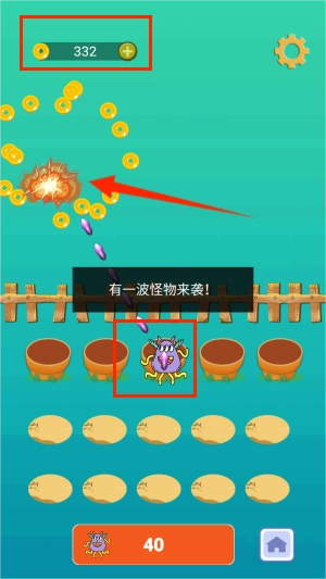 2、移动下面的小动物,可以去射击怪物。