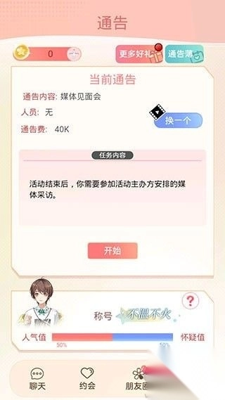 6、通告提供额外任务,完成后可获取人气值及其他资源奖励。