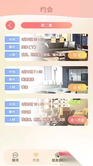 2、约会界面为剧情关卡入口,进入章节即可体验相应剧情发展;